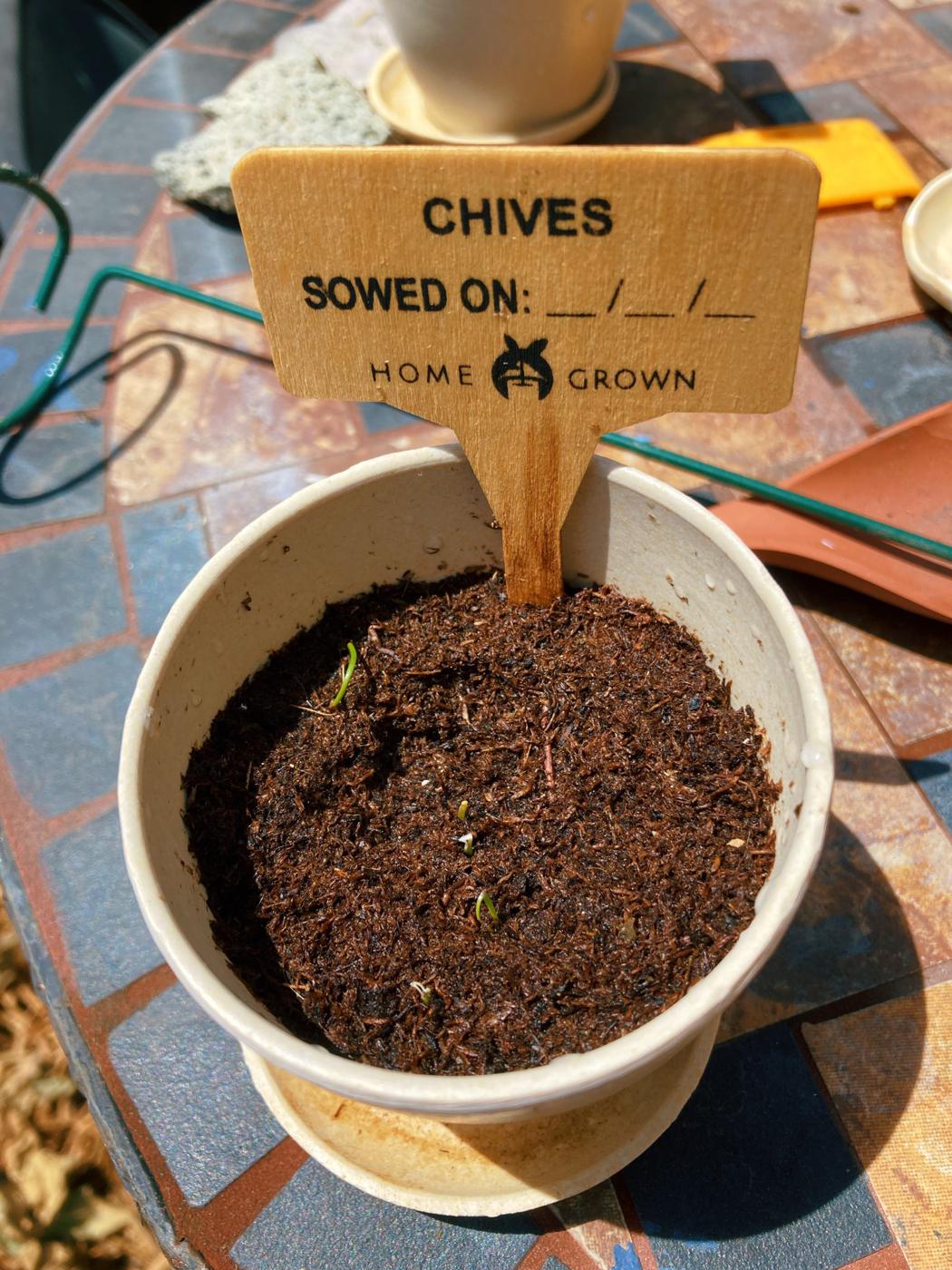 I mean the basil is furthest along! The chives are the other one that's poking their heads up.