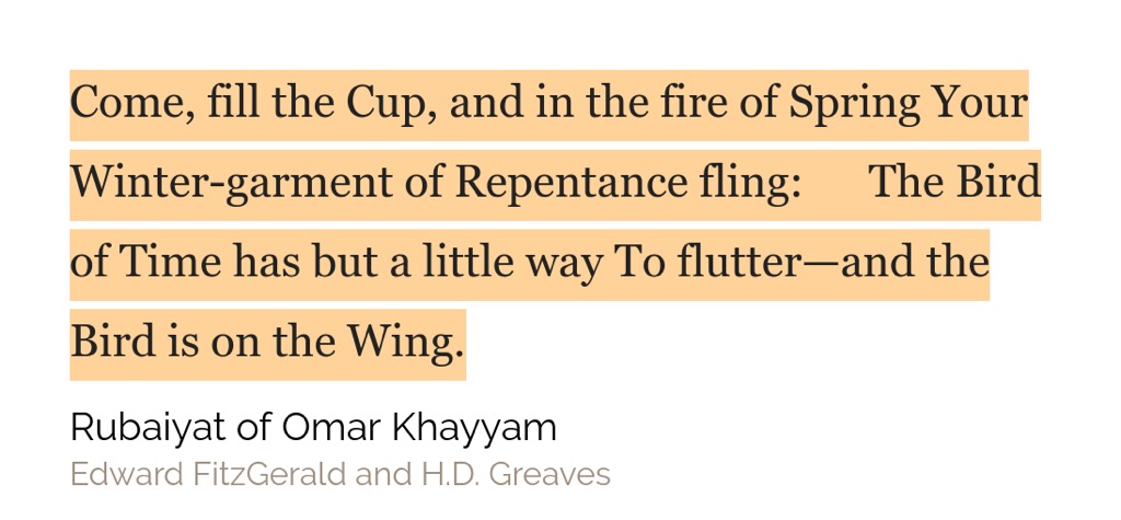 Weirdly formatted but the Rubaiyat of Omar Khayyam is one of my favourite poems.
